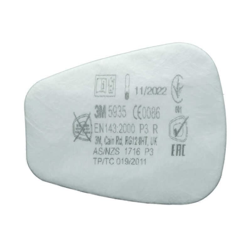 The 3M 5935 Particulate Filters can be used with 6000 series filters for combined gas and particulate protection in conjunction with a 501 filter retainer. These filters are light weight, designed for optimised breathing and protection from gases and fumes.